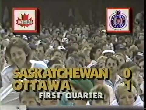 Dave Ridgway's 50-yard field goal with 2:31 remaining in regulation time provided the winning margin as the Roughriders edged the Eskimos before 17,566 fans--including this blogger--at Taylor Field in Regina. Saskatchewan quarterback Kent Austin completed touchdown passes of 64 yards to Jeff Fairholm and 25 yards to Byron Williams. Blake Marshall rushed 1 yard for the first Edmonton touchdown, and linebacker Willie Pless recovered a Saskatchewan fumble in the Roughrider end zone for the other Eskimo major. The Eskimos had a chance to win the game in the last minute, but quarterback Rickey Foggie mismanaged the clock, and Sean Fleming's 52-yard field goal attempt on the last play was short and conceded for a single by Rico Cartwright, who was making what turned out to be his last play in the CFL. It was the second and last game as a Roughrider for rookie punter Mike Vanderjagt, who didn't return to the CFL until he joined the Toronto Argonauts in 1996.